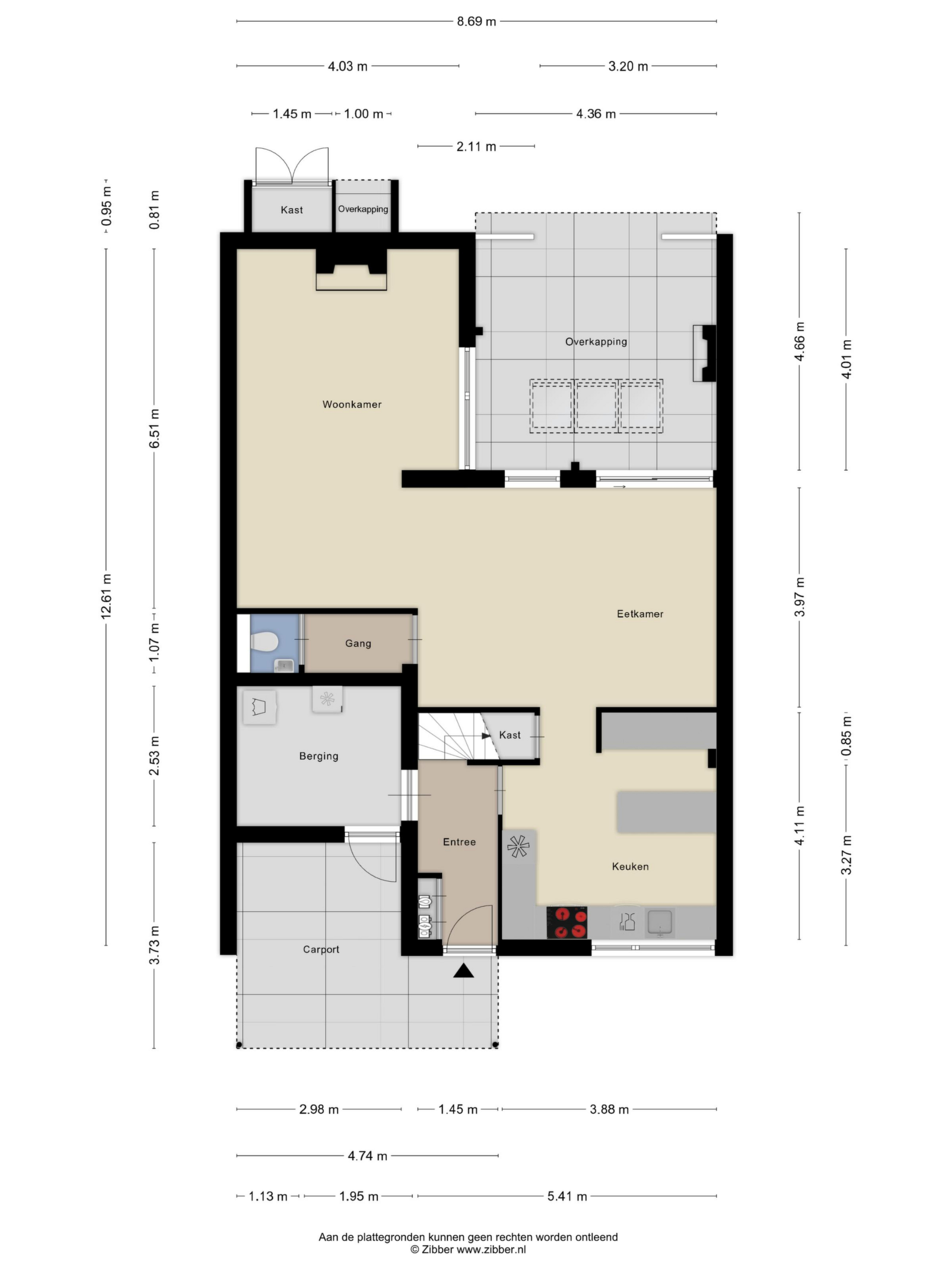- Overdekte entree opzij, hal, groepenkast, trapopgang en doorgang naar