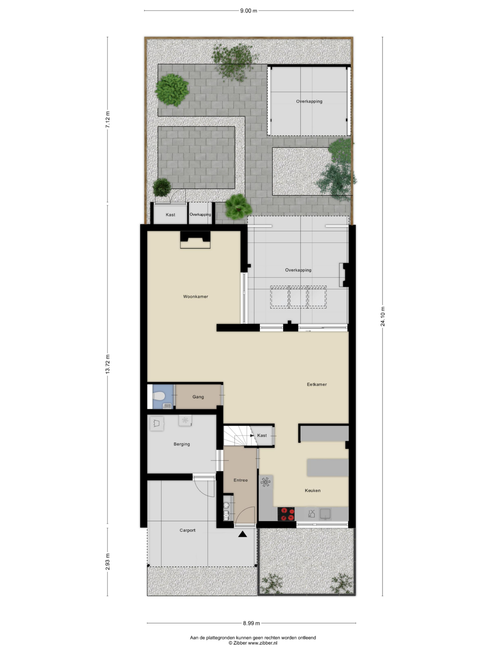 De woning beschikt over een carport en een zonnige, onderhoudsarme tuin