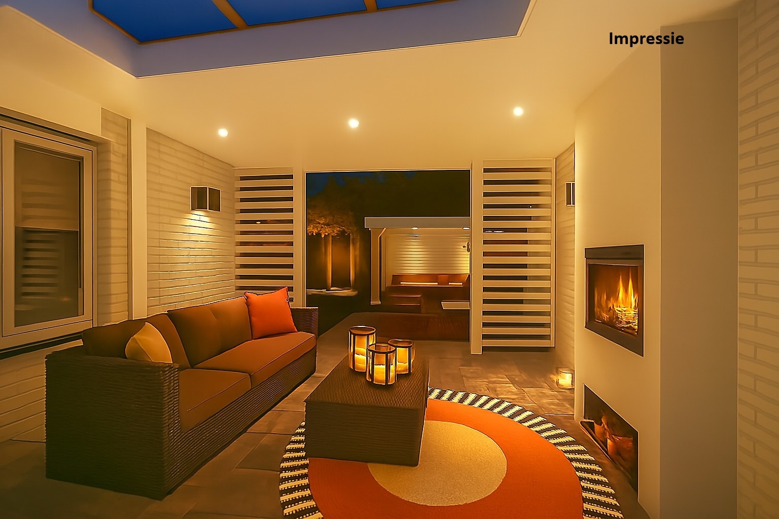 - Aangebouwde overkapping (± 20 m²) met lichtstraat en sfeerhaard;