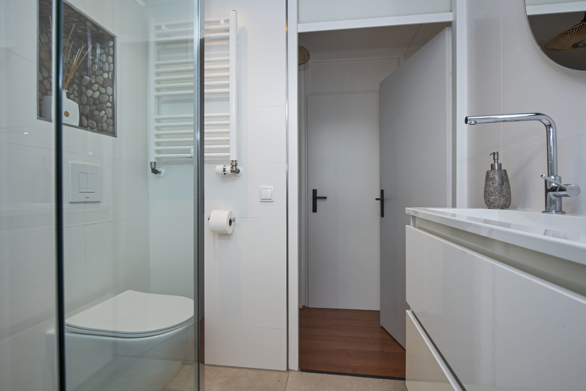 - Inpandige hal en gerenoveerd toilet met wandcloset en fonteintje.