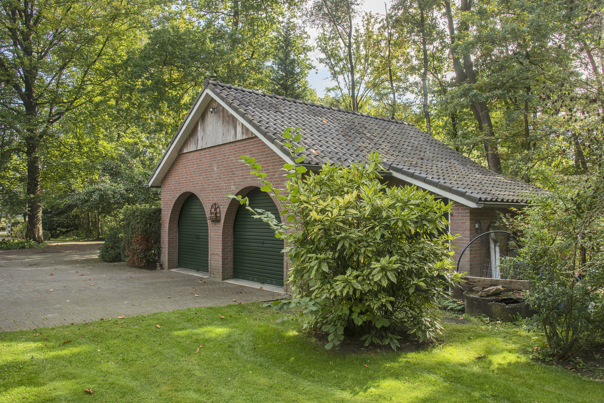 2. Vrijstaande stenen, dubbele garage (± 45 m²) met vliering;