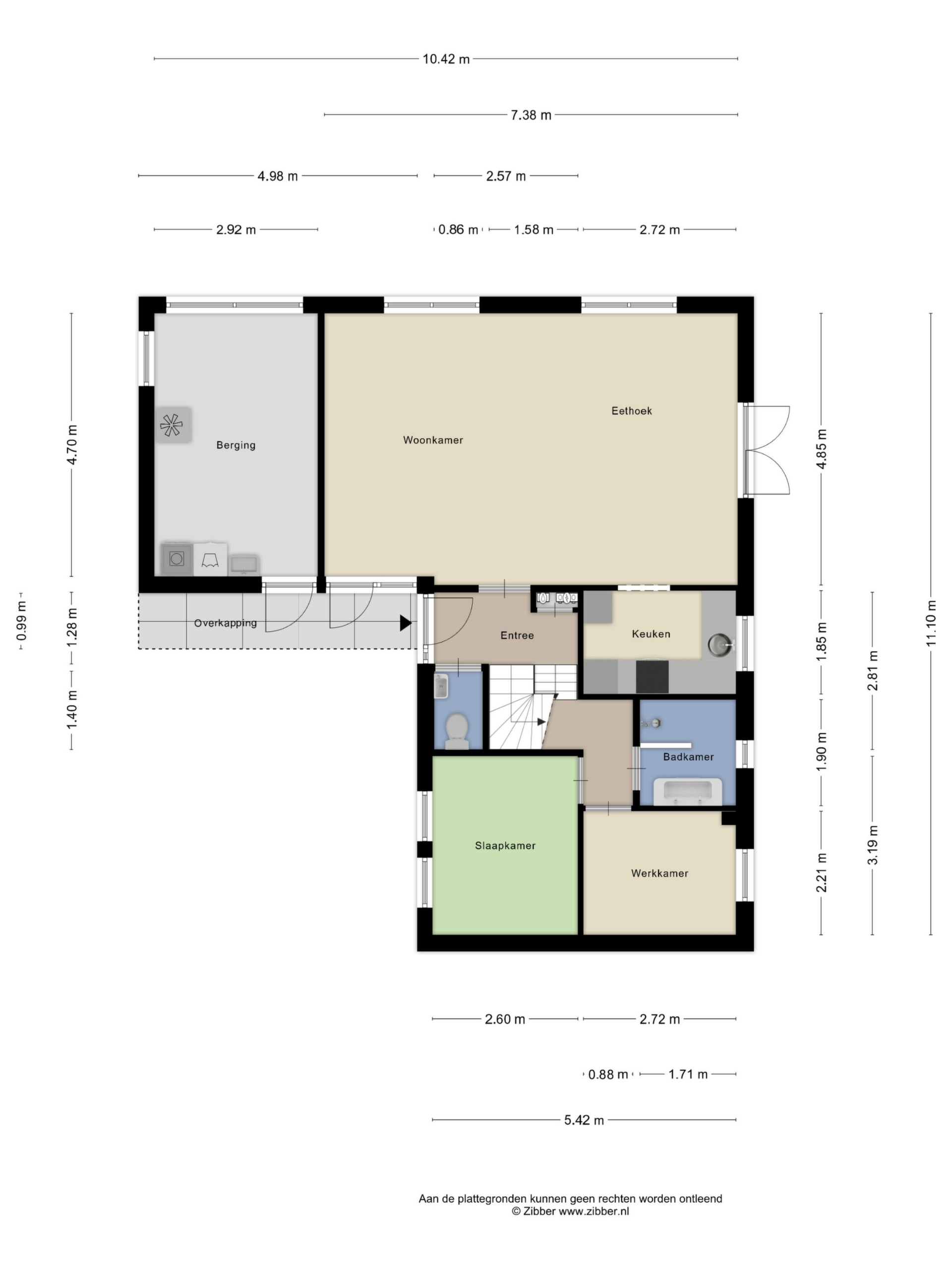 - Overloop en toilet met wastafel;