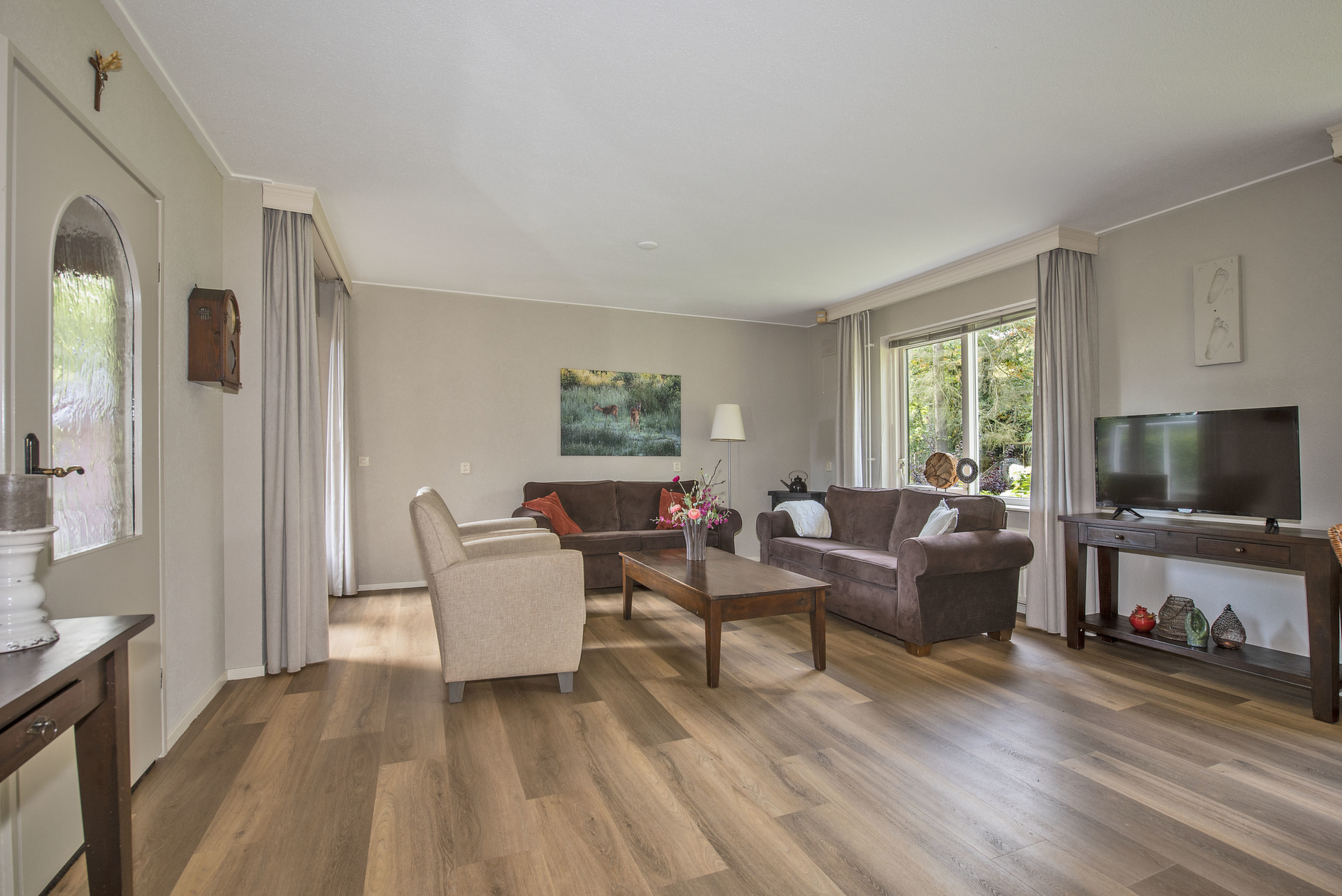 - Fraaie PVC-vloer in woonkamer, keuken en hal;