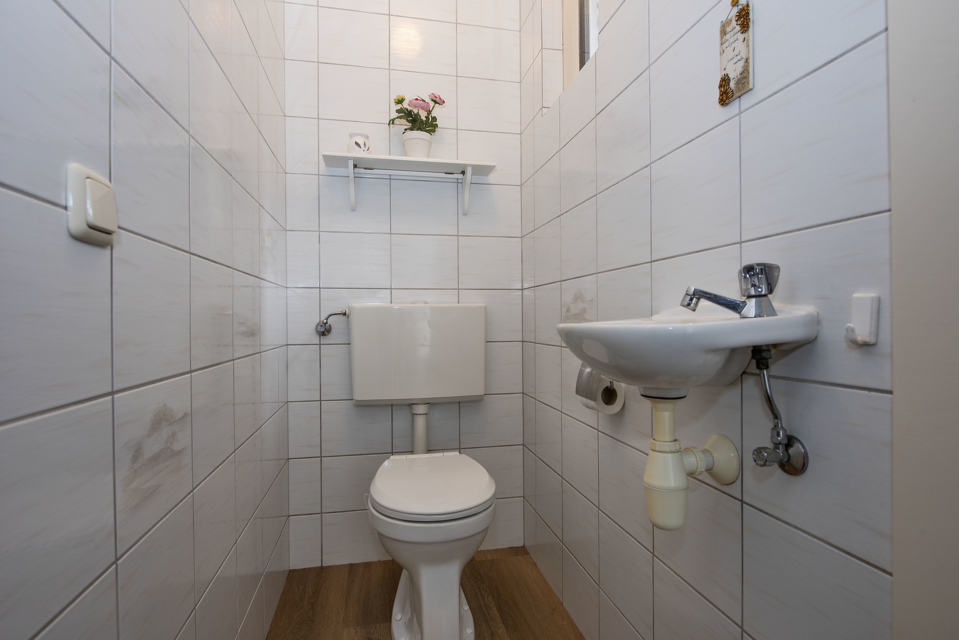 - Entree, hal met groepenkast en toilet met fonteintje;