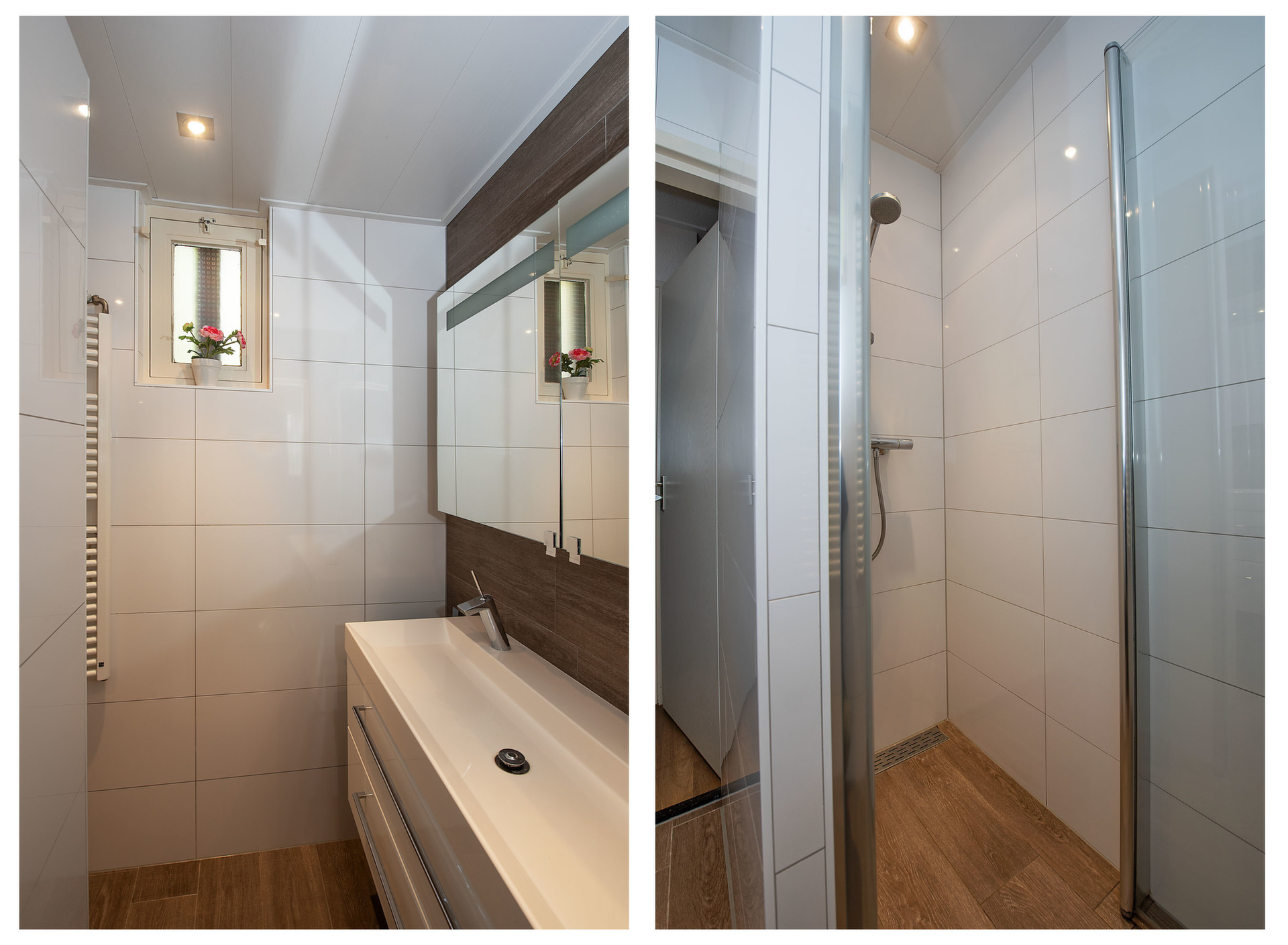 - Badkamer 2015 v.v. douche en wastafel met dubbele kraan.