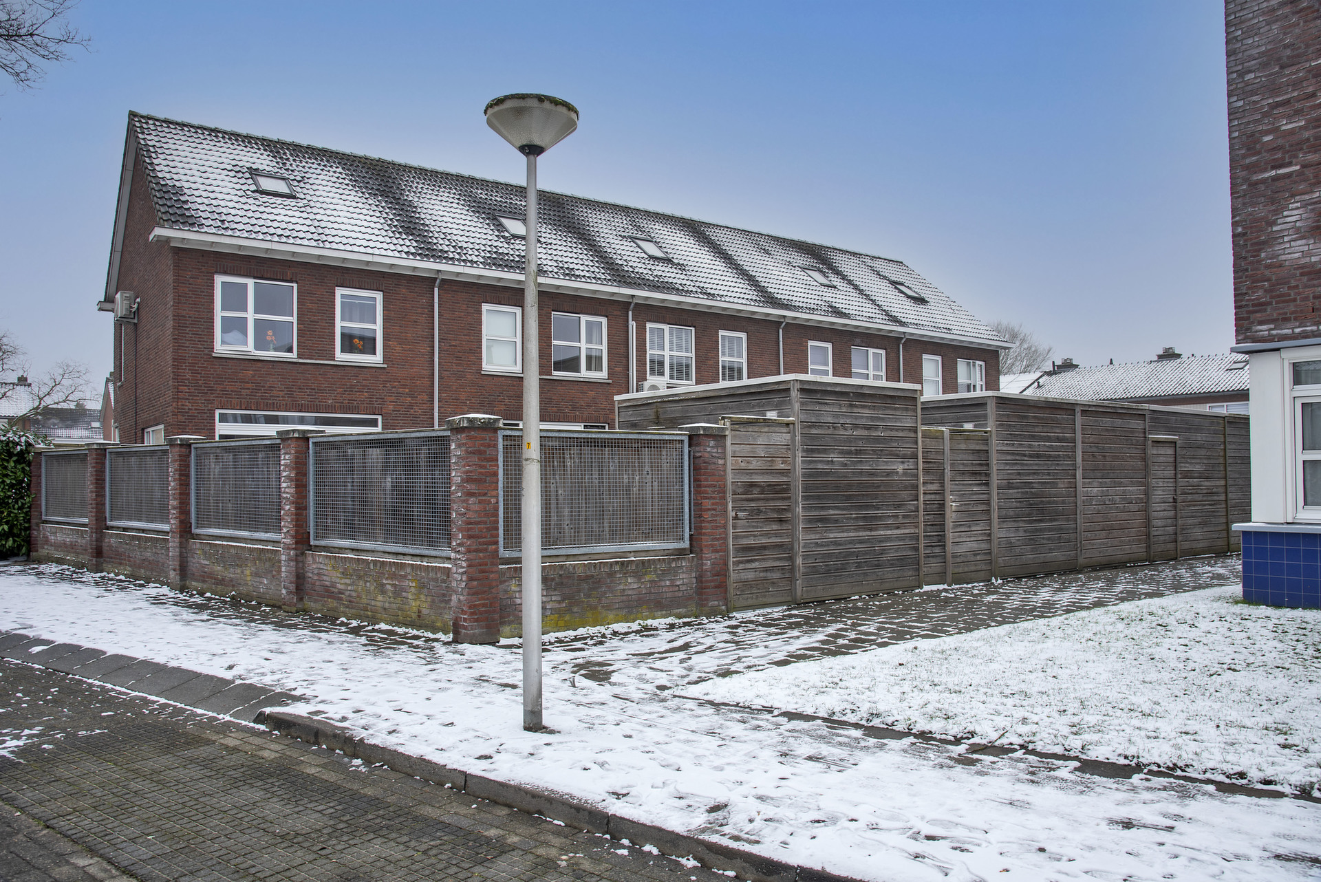aan een rustige straat met plantsoen aan de voorzijde.