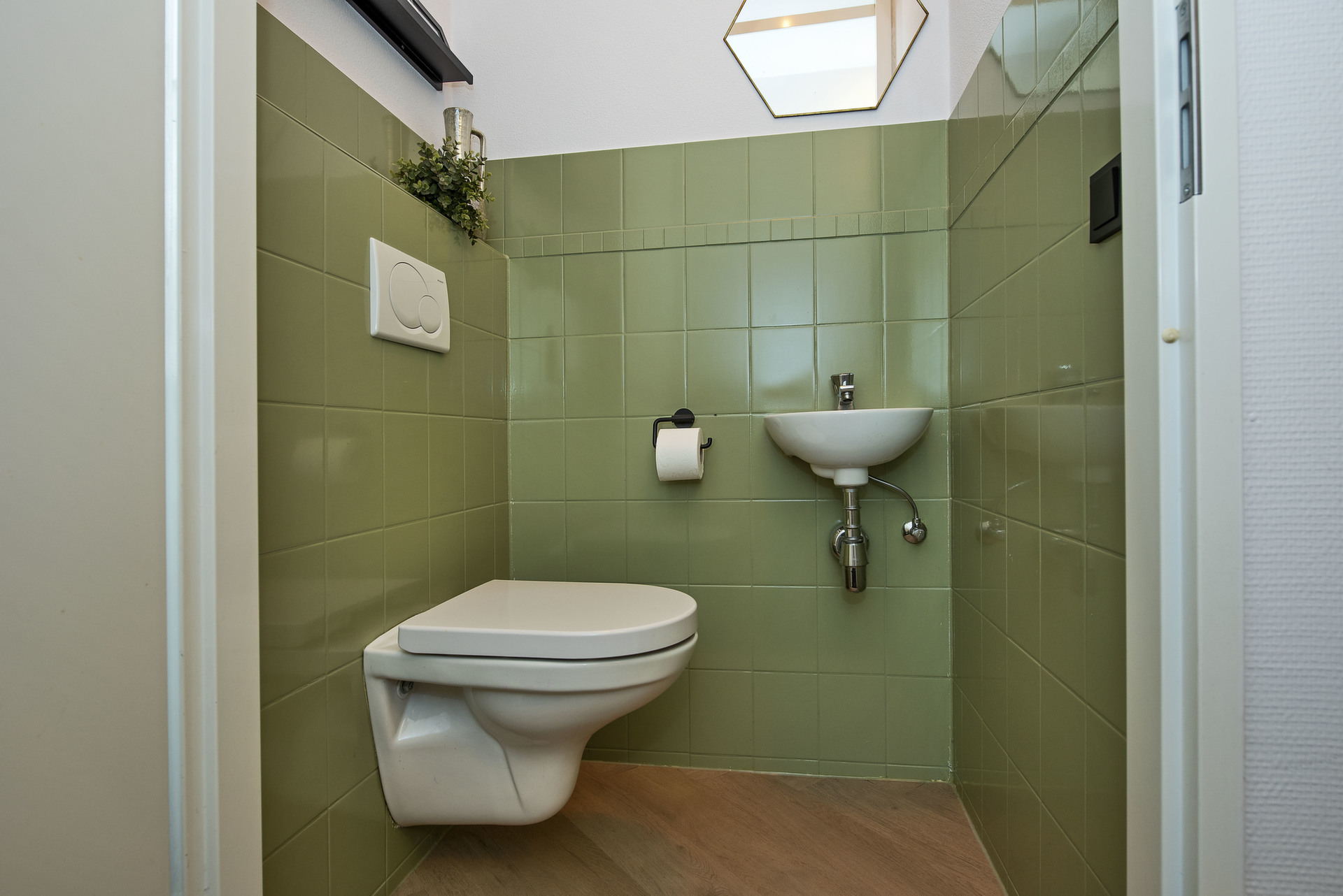 - Entree/hal, toilet met wandcloset en fonteintje;