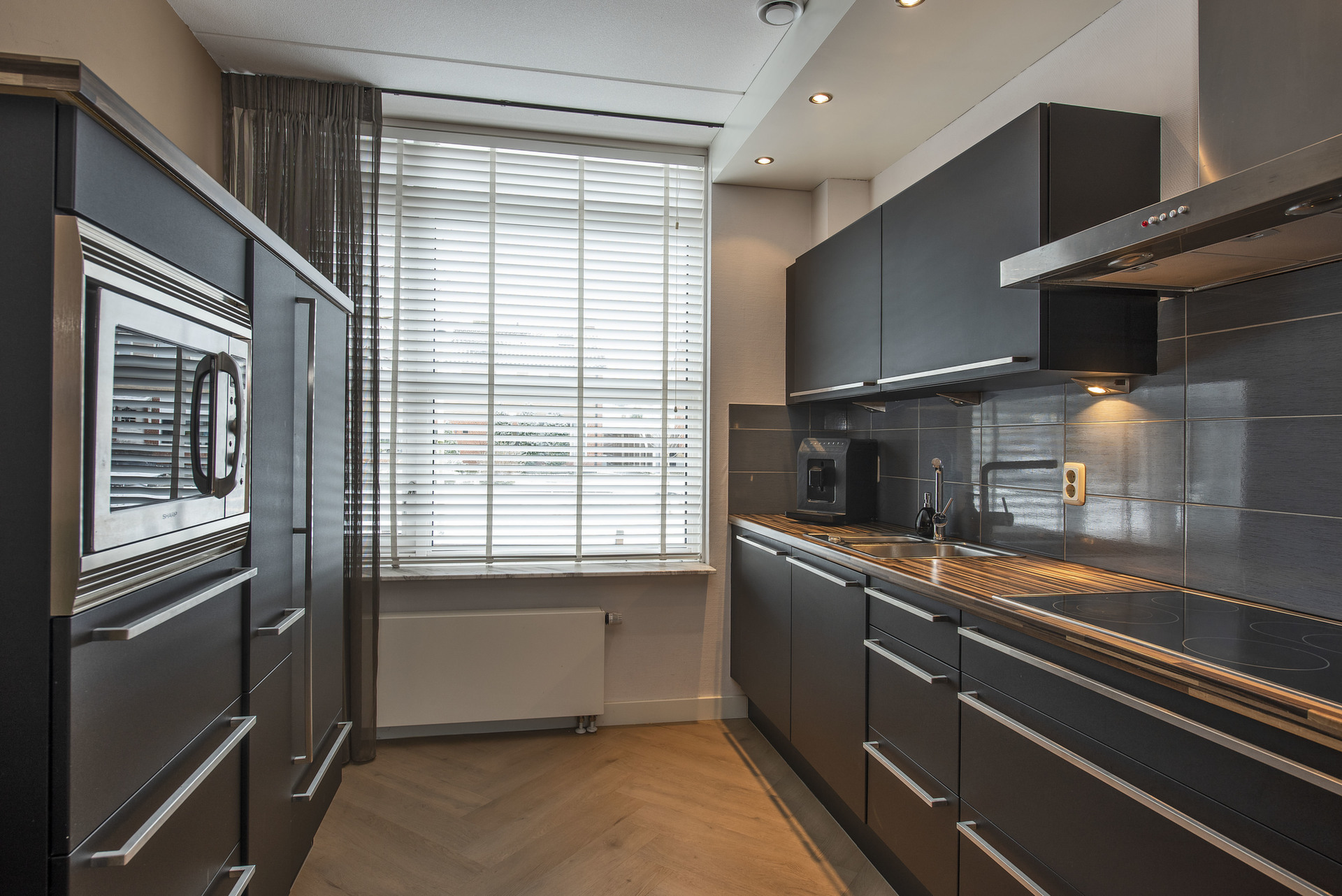- Open keuken v.v. keramische kookplaat, afzuiging, koel-vriescombinatie,