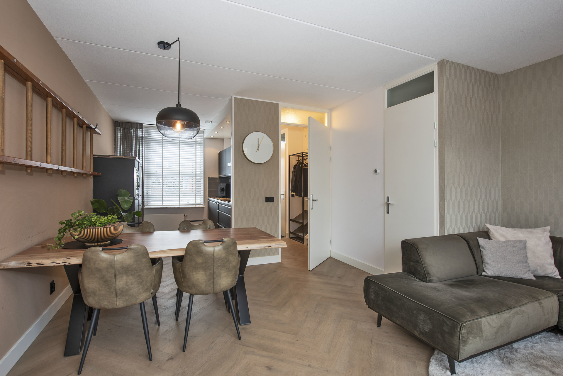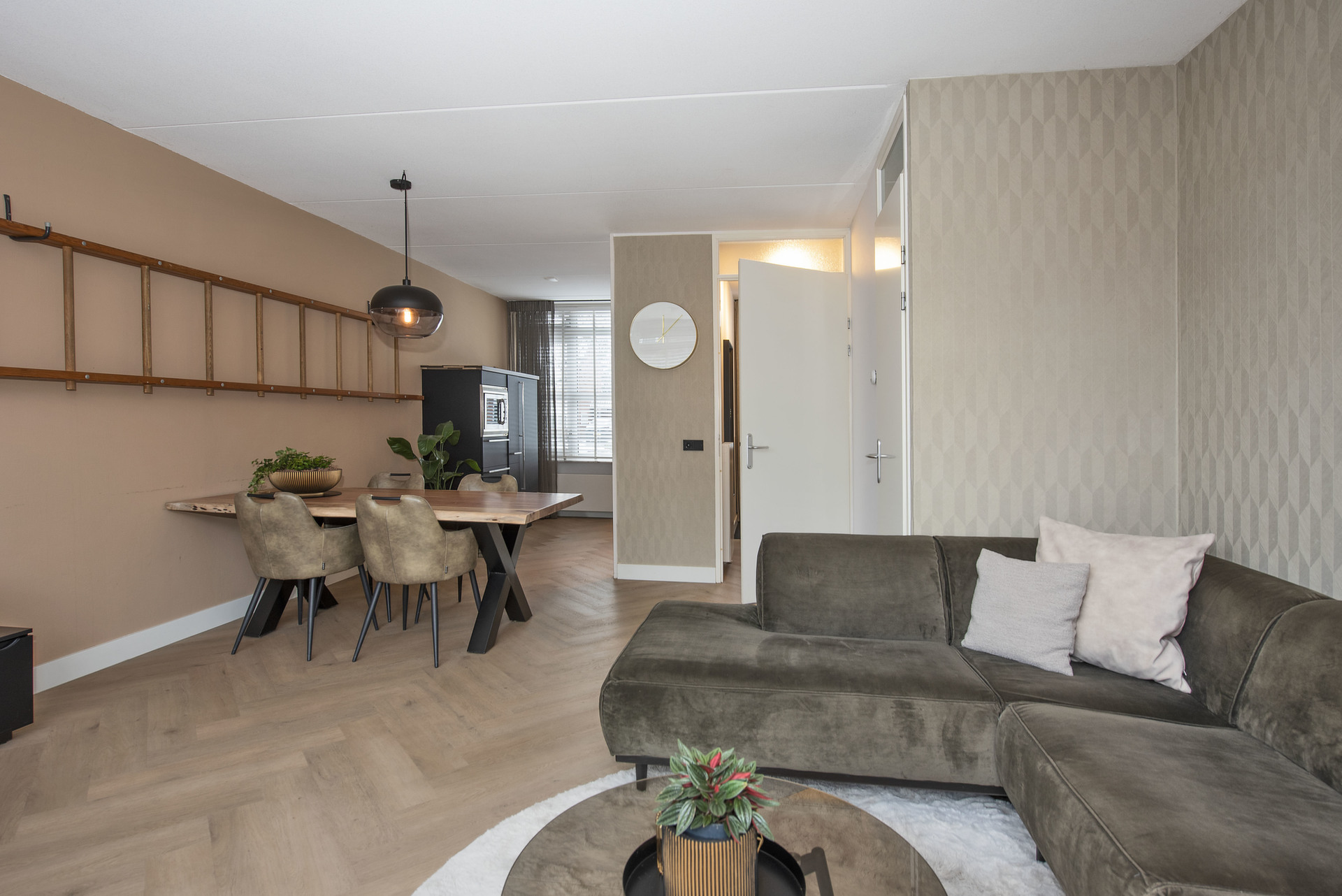 - L-vormige woonkamer (± 22 m²) met provisiekast;