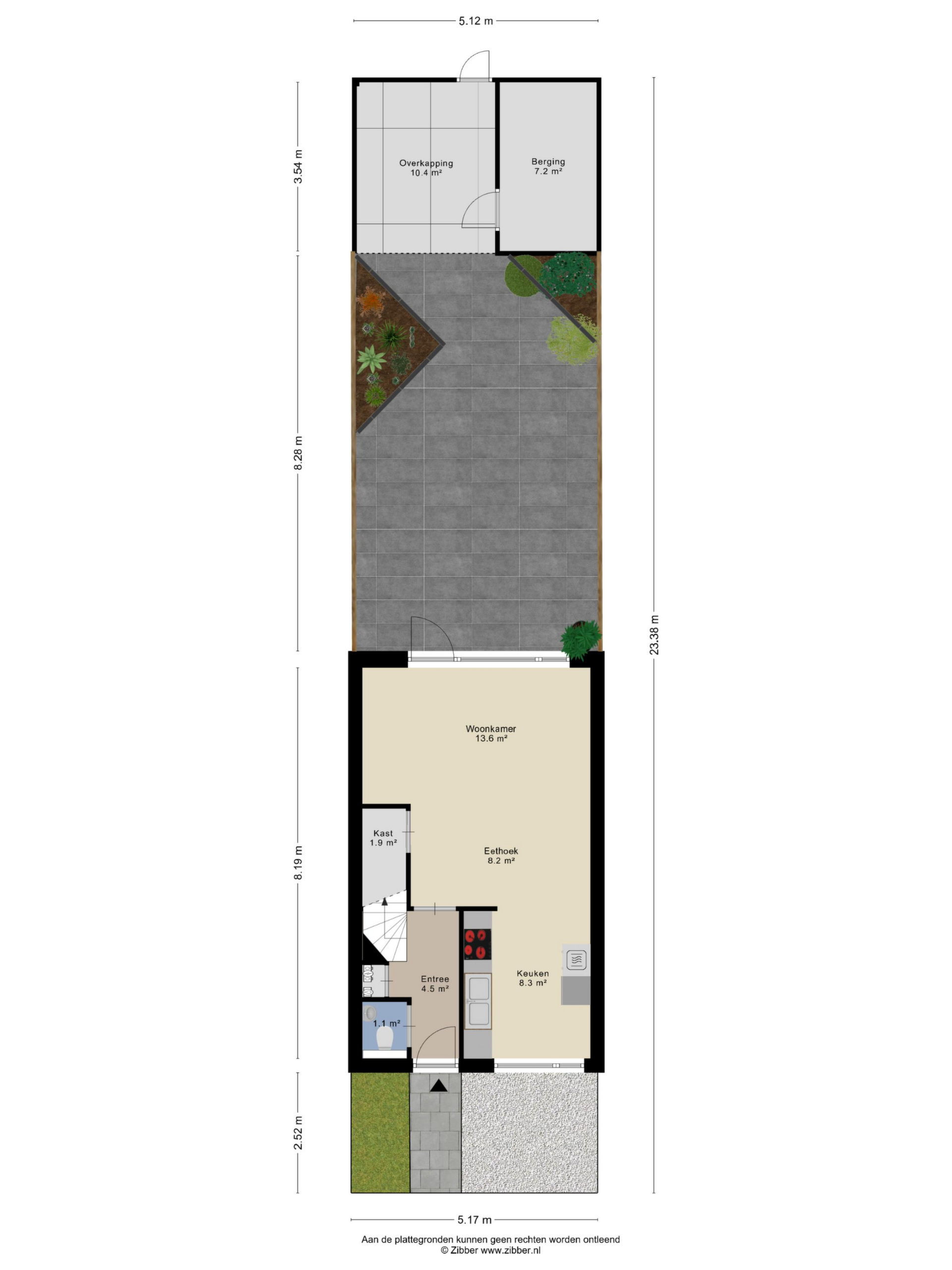 - Buiten: Onderhoudsarme tuin op het noord-oosten;