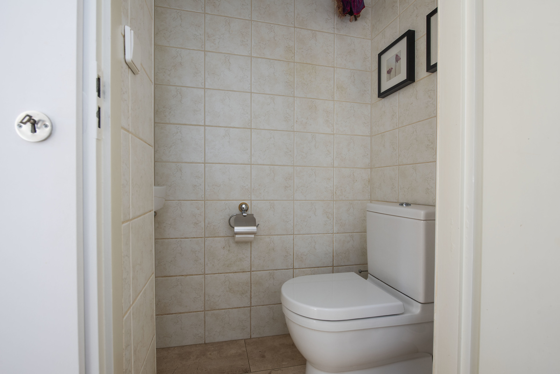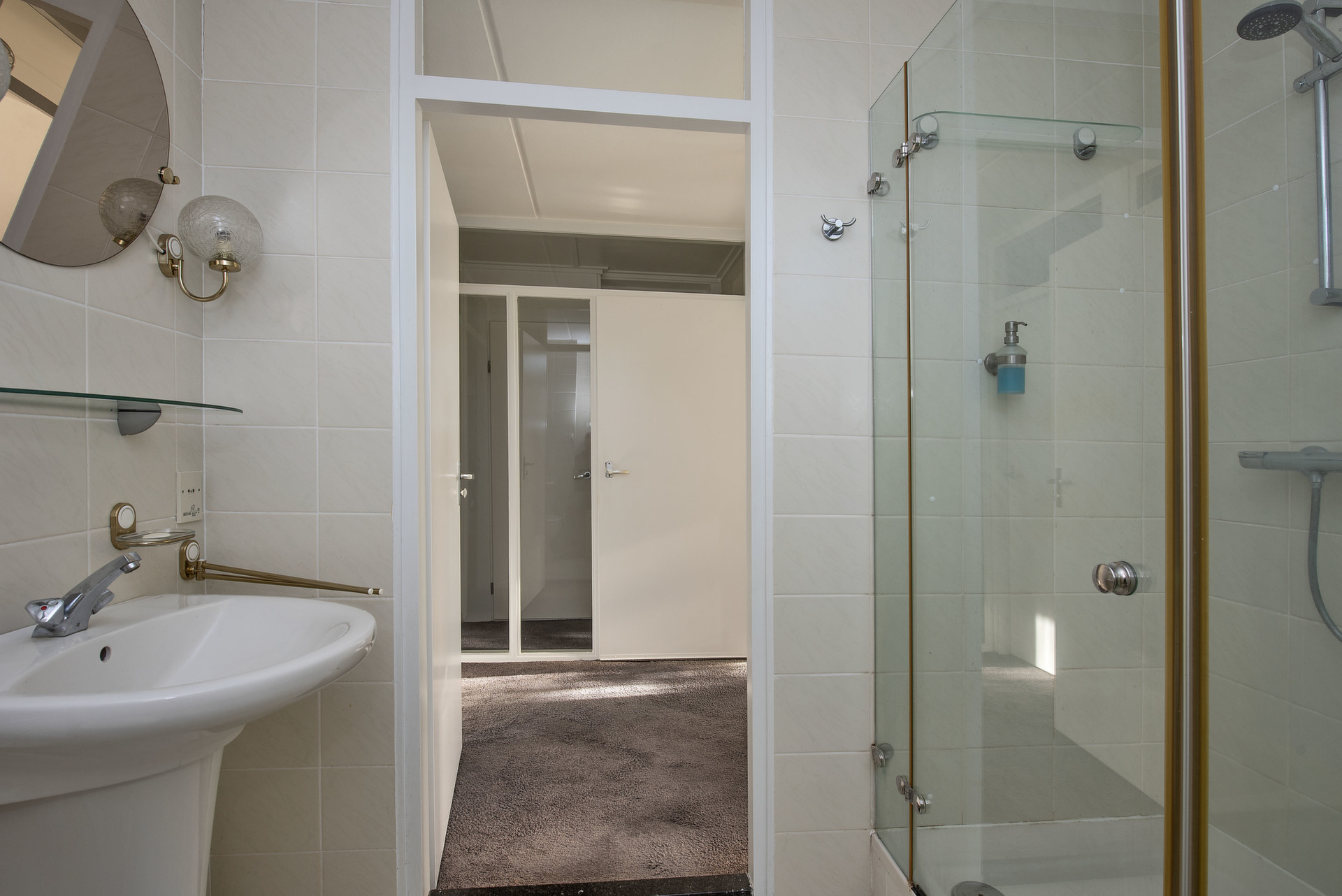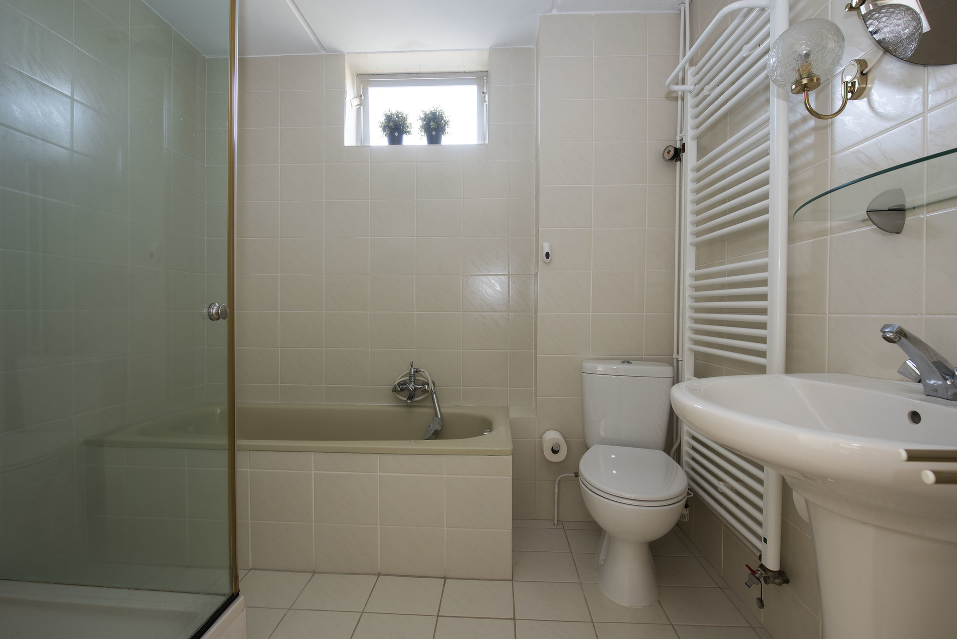 - Badkamer (gedateerd) met ligbad, douche, wastafel en toilet;
