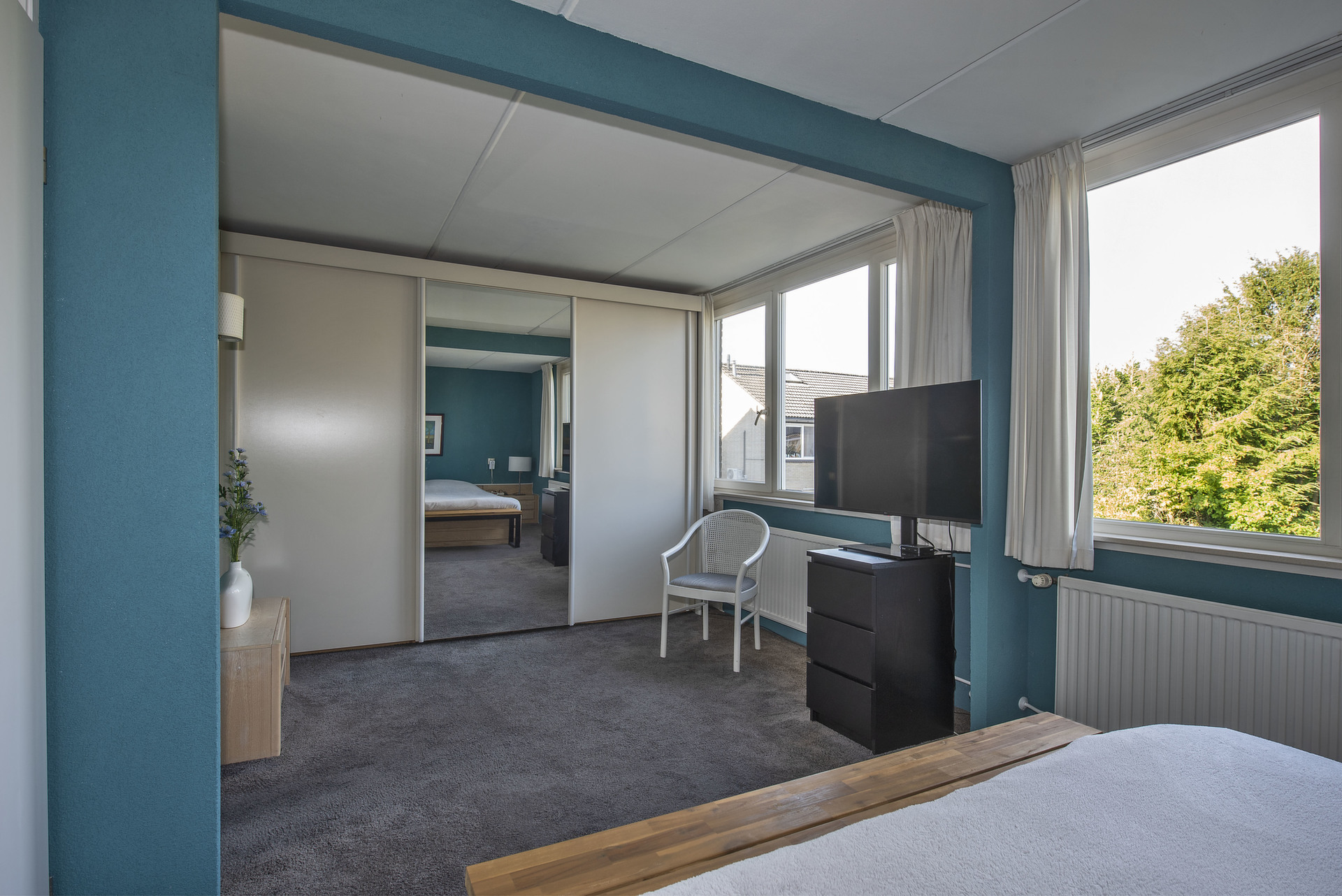 - De twee slaapkamers aan de achterzijde zijn samengevoegd tot één grote