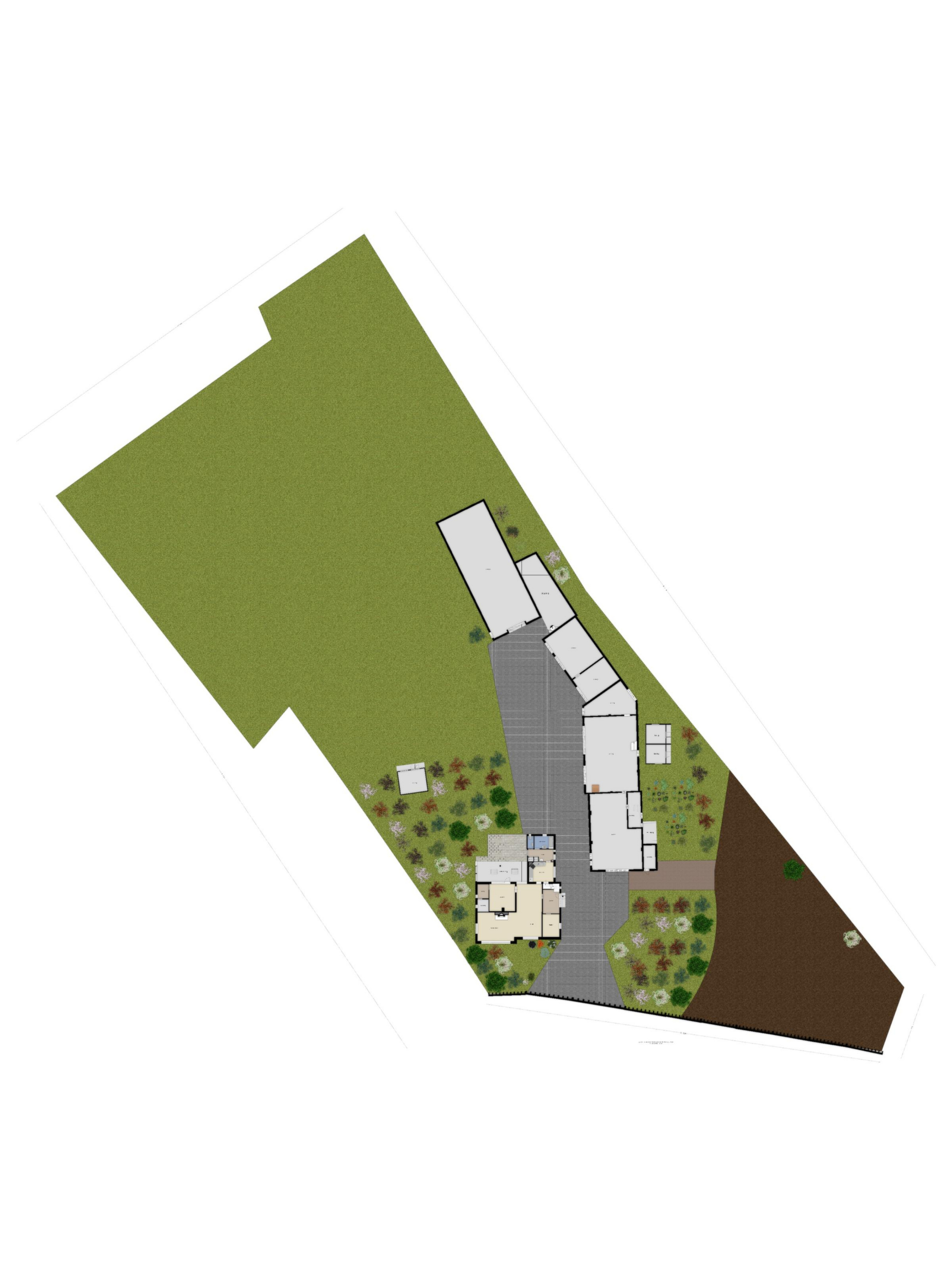 - Circa 566 m² aan bijgebouwen, waarvan ± 480 m² op de begane grond.