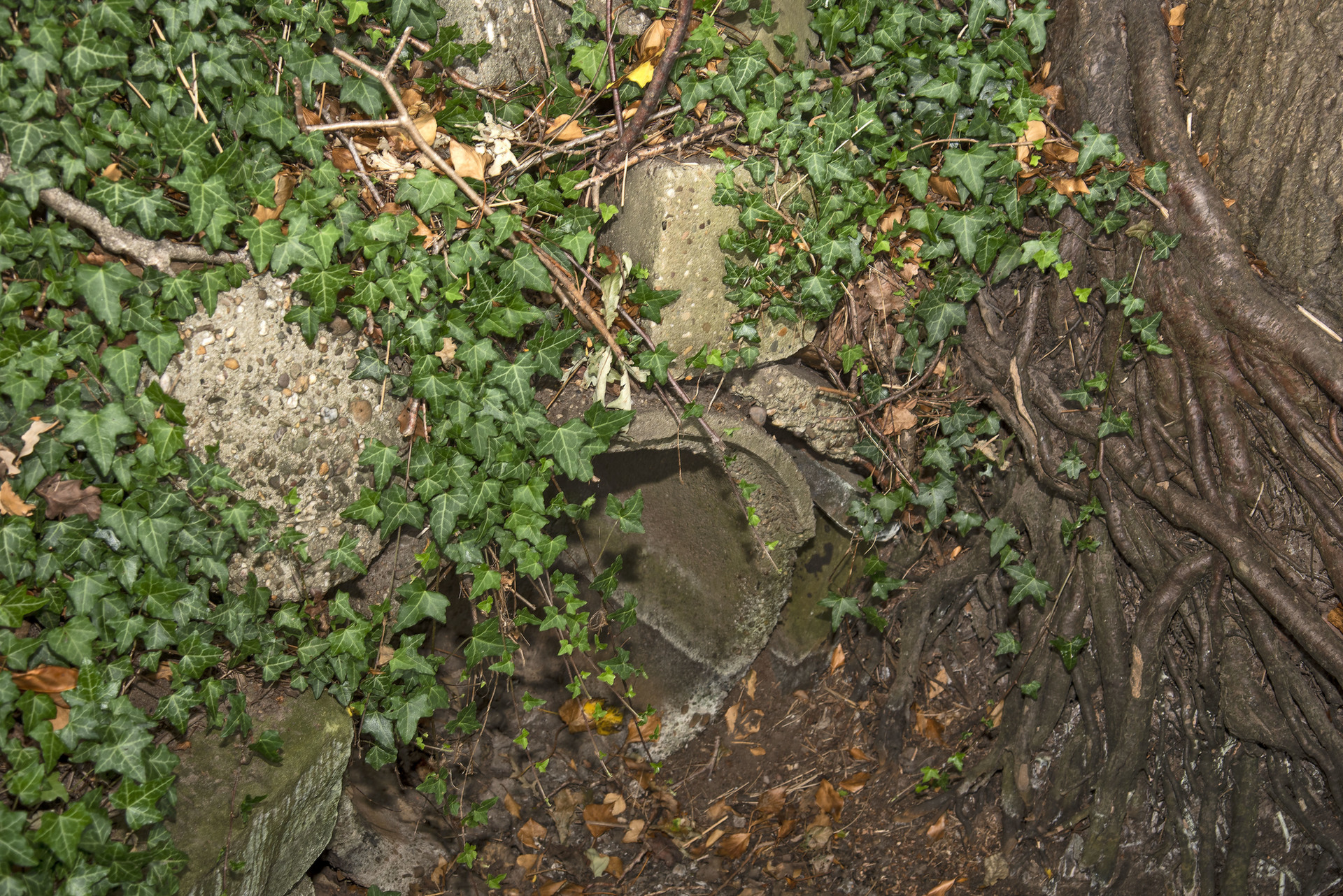 Beek", die (deels ondergronds) door de percelen en onder een bijgebouw