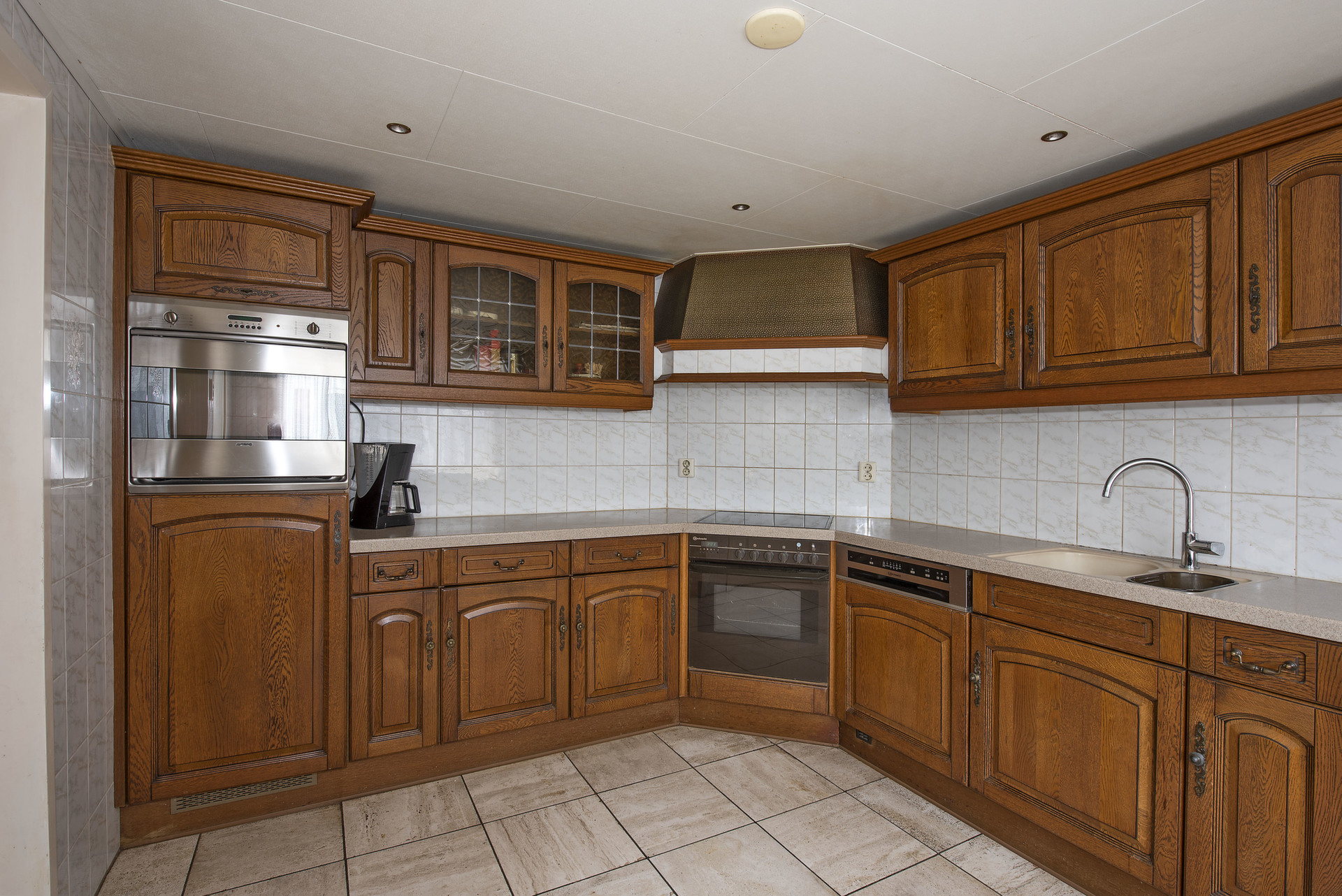 - Dichte woonkeuken (± 12 m²) met keukenblok in hoekopstelling;
